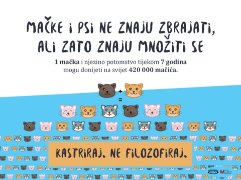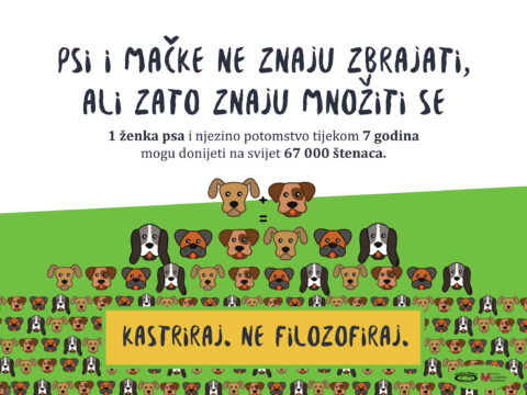 Obraćamo Vam se povodom izlaska nove kampanje pod nazivom „Psi i mačke ne znaju zbrajati, ali znaju množiti se“ koja upozorava na visoku reproduktivnu snagu pasa i mačaka zbog koje je važno njihovo razmnožavanje kontrolirati trajnom sterilizacijom, odnosno kastracijom.