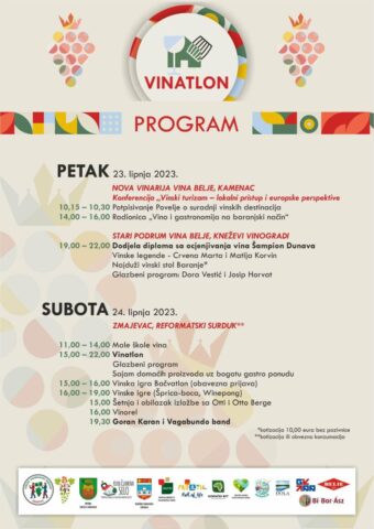 Uz kratka i zanimljiva vinska svjedočanstva, izložbe, bogatu ponudu baranjskih gastro delicija te gostovanja vinskih znalaca iz cijele regije, program je upotpunjen konferencijom „Vinski turizam – lokalni pristup i europske perspektive“ koja će se održat 23. lipnja u novoj vinariji Belje u Kamencu.