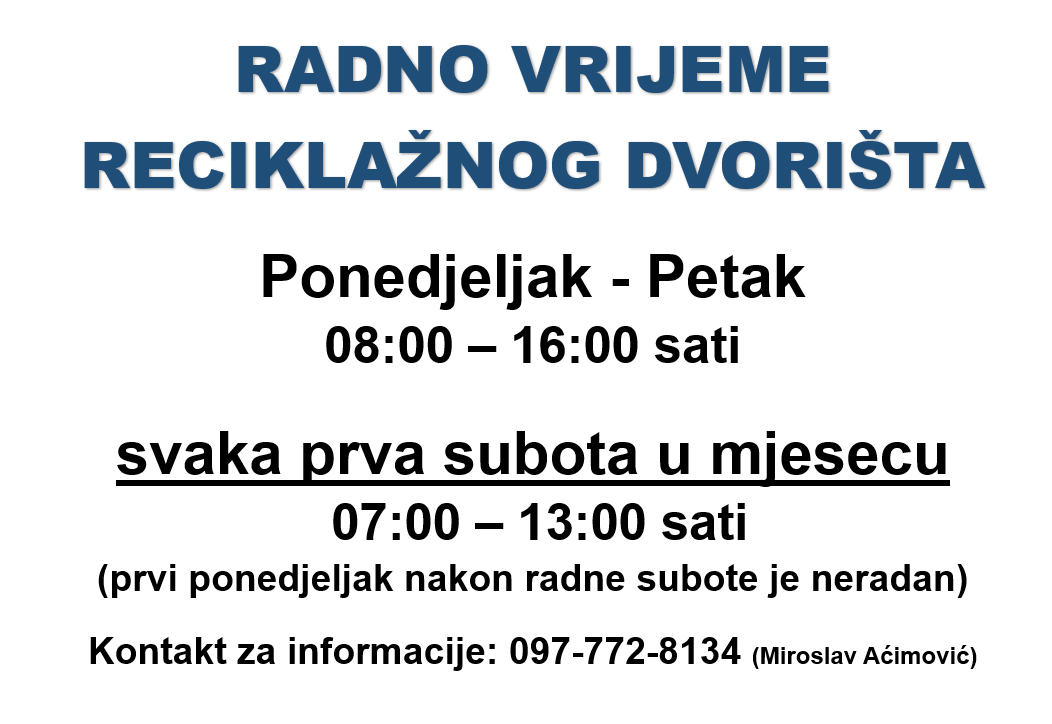 Reciklažno dvorište je komunalna građevina namijenjena kontroliranom odvojenom sakupljanju, razvrstavanju i privremenom skladištenju manjih količina otpada po vrstama. U reciklažno dvorište otpad BESPLATNO mogu odlagati isključivo građani (fizičke osobe) sa područja Općine Kneževi Vinogradi u količinama koje odgovaraju onima koje se proizvedu i sakupljaju u kućanstvu.