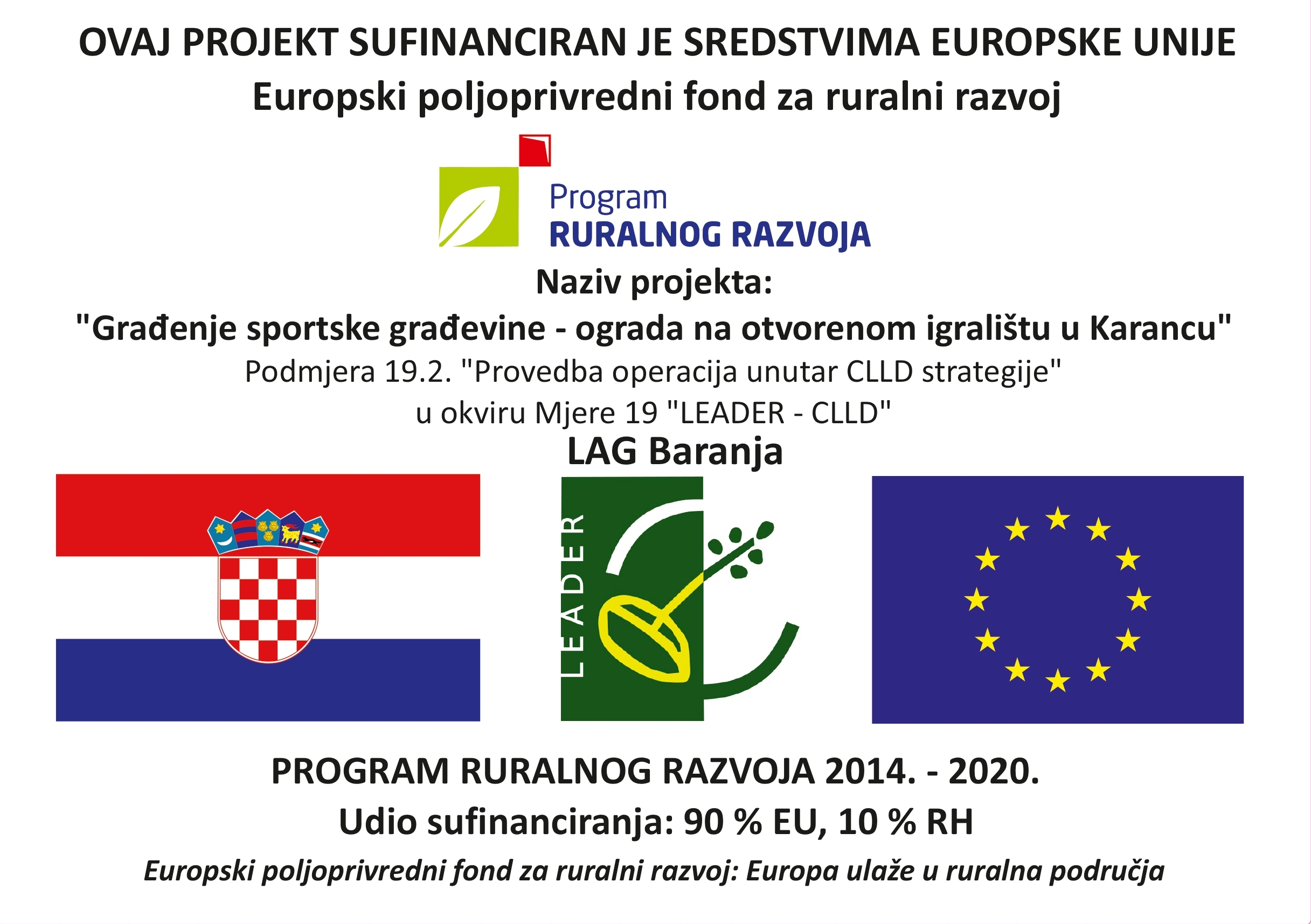 Naziv projekta: Građenje sportske građevine – ograda na otvorenom igralištu u Karancu