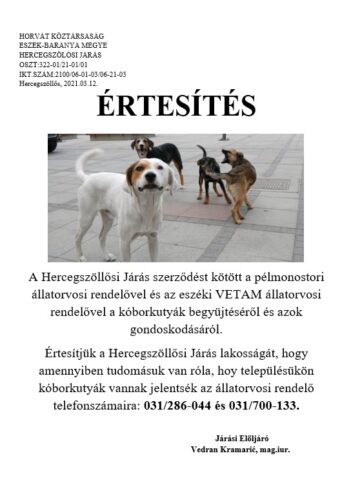 Stoga obavještavamo stanovnike Općine Kneževi Vinogradi da ukoliko imaju saznanja da u njihovom naselju ima pasa lutalica, obavijeste veterinarsku stanicu na telefonske brojeve: 031/286-044 i 031/700-133.