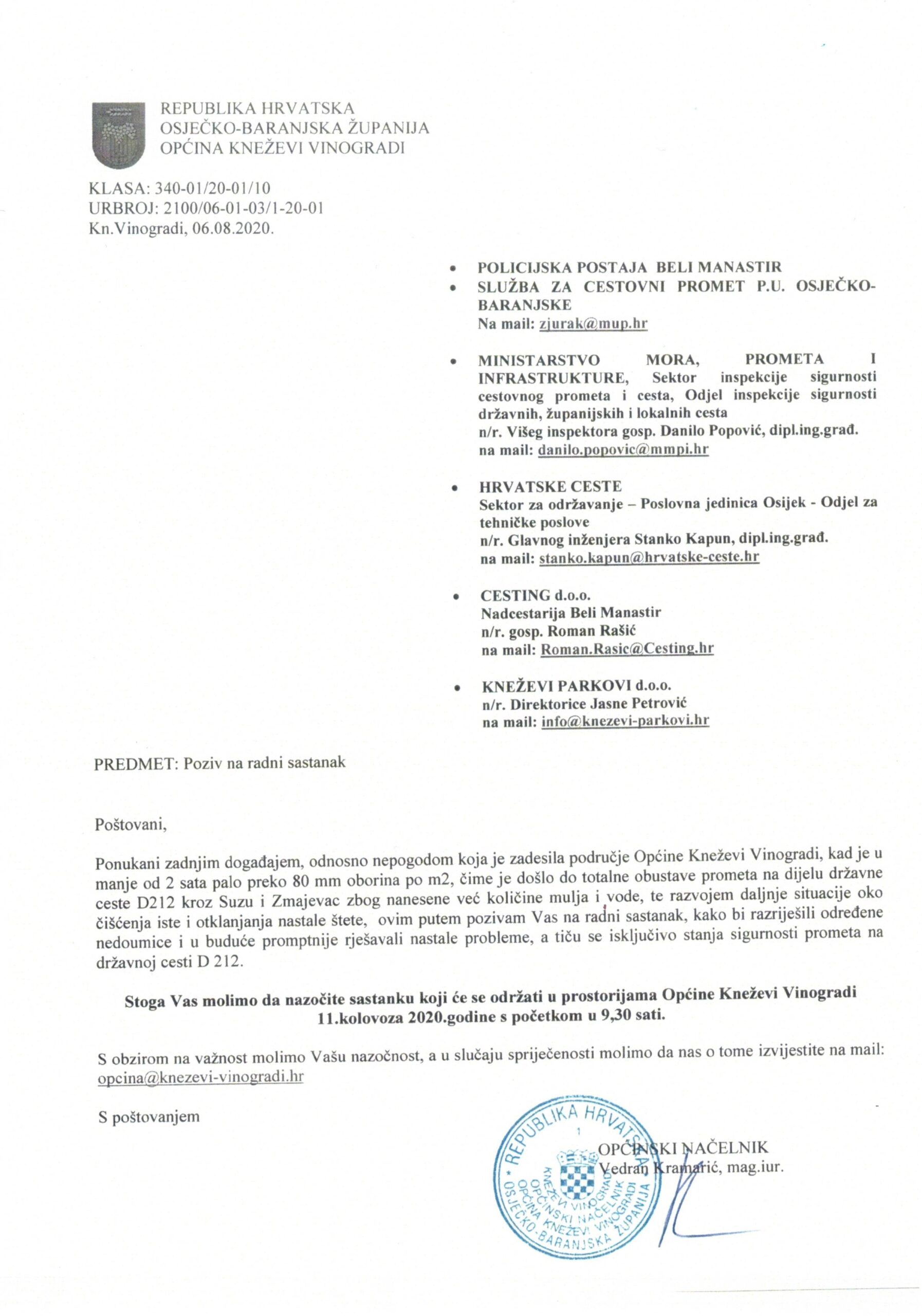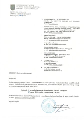 Općinsko vodstvo predvođeno Općinskim načelnikom Vedranom Kramarić je odmah nakon elementarne nepogode održalo dva sastanka 11.kolovoza i 15.rujna 2020. sa najkompetentnijim službama (pozivi u prilogu) radi sagledavanja problema i traženja najboljeg rješenja zaštite naselja Suze i Zmajevca od oborinskih i bujičnih voda.